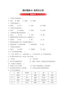 《2022-2023学年高一化学同步课时核心考点讲与练(人教2019必修第一册)》课时01 物质的分类(精练)(原卷版)
