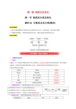 《2022-2023学年高一化学同步课时核心考点讲与练(人教2019必修第一册)》课时02 分散系及其分类(精讲)