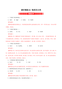 《2022-2023学年高一化学同步课时核心考点讲与练(人教2019必修第一册)》课时01 物质的分类(精练)(解析版)