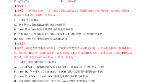 《2022-2023学年高二化学同步精品课堂(人教版选修4)》1.1.3 中和反应的反应热及其测量(解析版)