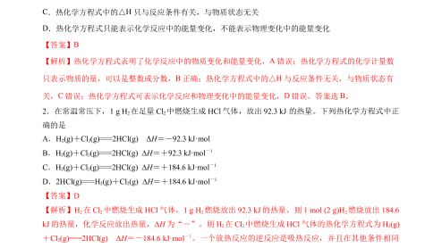《2022-2023学年高二化学同步精品课堂(人教版选修4)》1.1.2 热化学方程式(解析版)