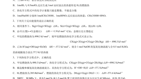 《2022-2023学年高二化学同步精品课堂(人教版选修4)》1.2 燃烧热 能源(原卷版)