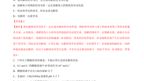 《2022-2023学年高二化学同步精品课堂(人教版选修4)》3.1 弱电解质的电离(第1课时 强、弱电解质)-(解析版)