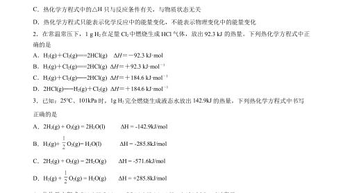 《2022-2023学年高二化学同步精品课堂(人教版选修4)》1.1.2 热化学方程式(原卷版)
